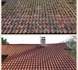 Rénovation sur Tuiles Béton REDLAND En 3 étapes nettoyage produits industriels ,
